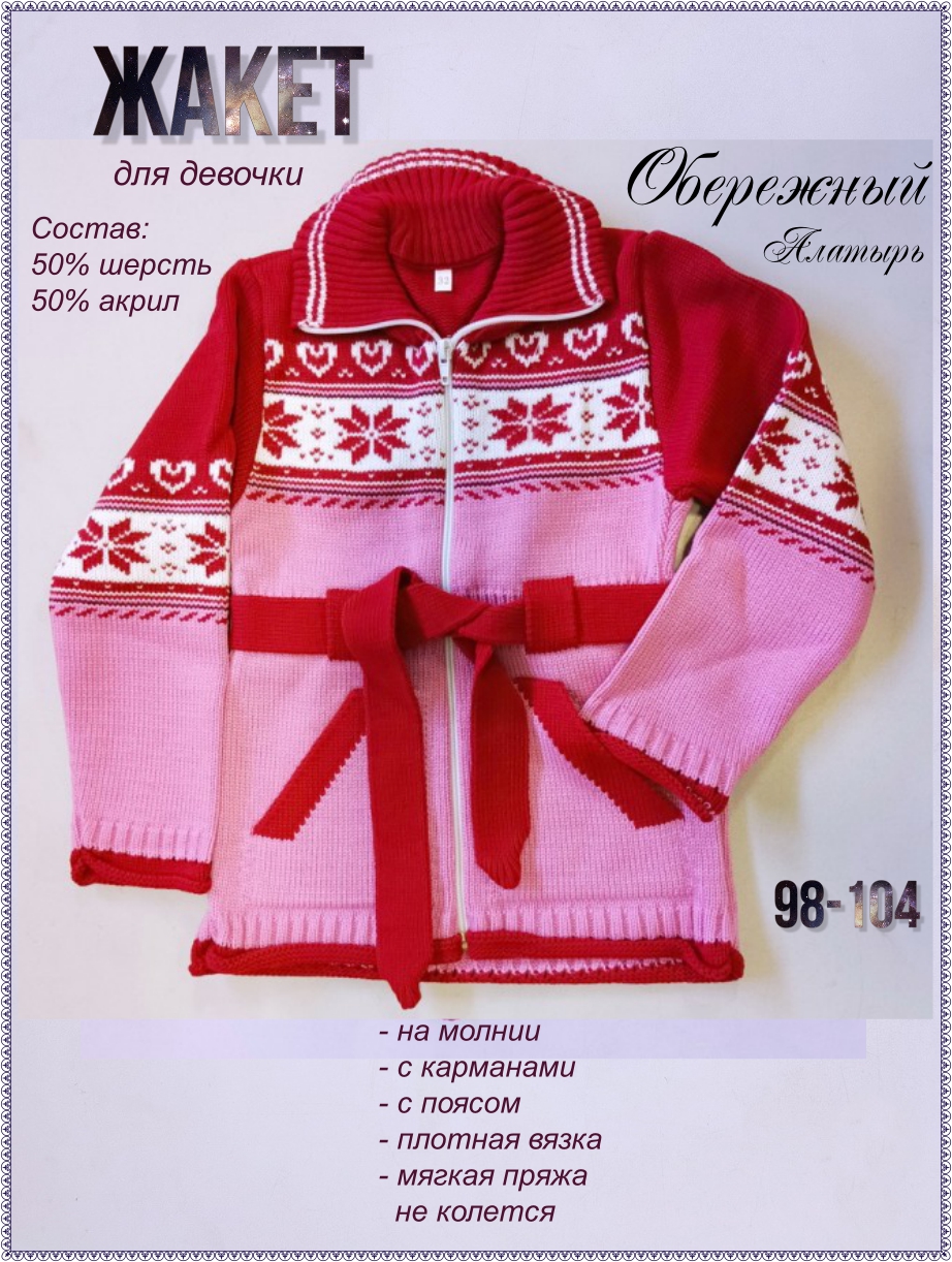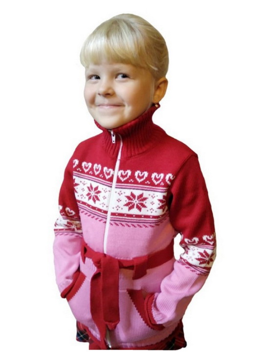 Очаровательный детский джемпер для девочки с орнаментом Снежинки, на молнии, с пояском и карманами