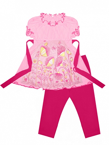 Комплект для девочки (стильная туника с поясом и бриджи).Туника с ярким принтом.